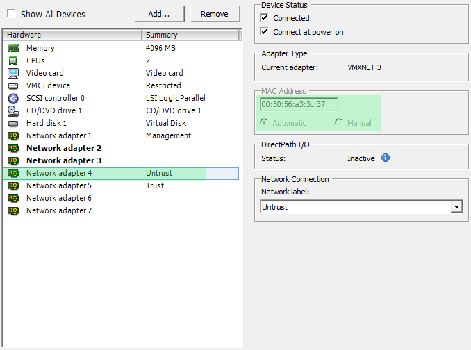 Power on the VM and verify the changes: Repeat for all interfaces that are required to work without promiscuous mode. Please note this only applies to L3 interfaces.