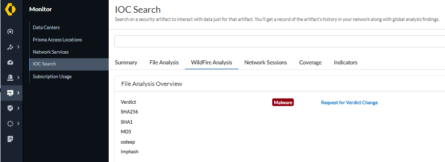 Log into Hub, and go to Strata Cloud Manager > Monitor > IoC search
