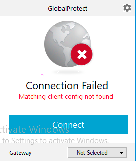 连接到 GlobalProtect 错误失败"未找到匹配客户端配置"