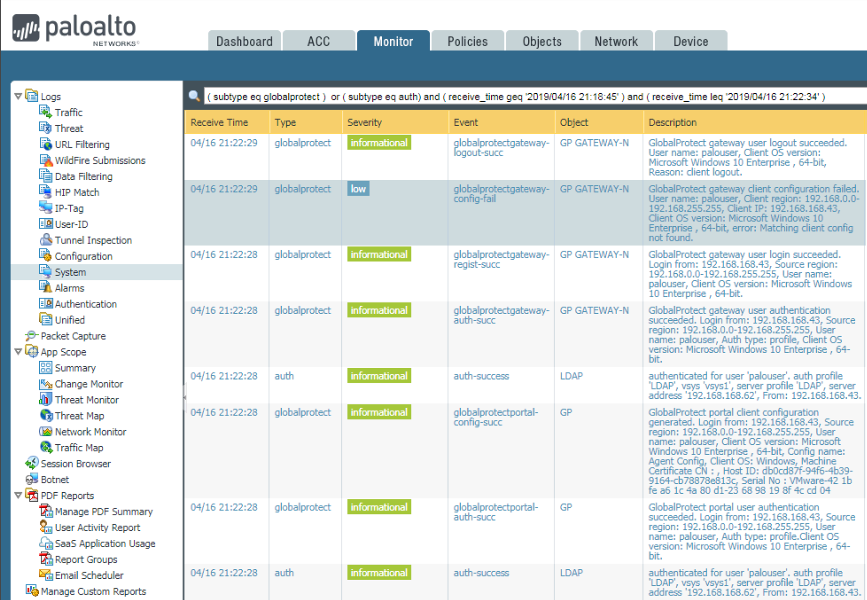 - 根据系统日志,对门户和网关的认证是成功的:但是, GlobalProtect 以下错误失败