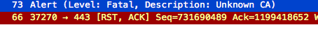 - 交换 CA 服务器证书包后,数据包捕获显示"未知"