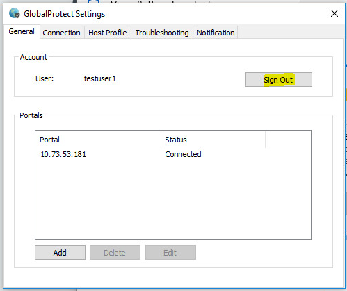 - The user is clicking the "Sign Out" button to disconnect from GlobalProtect.