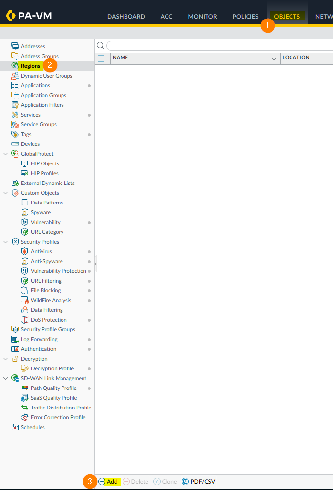 For immediate remediation, the firewall has the capability to create a custom region via the PAN-OS Web GUI: Objects > Regions.