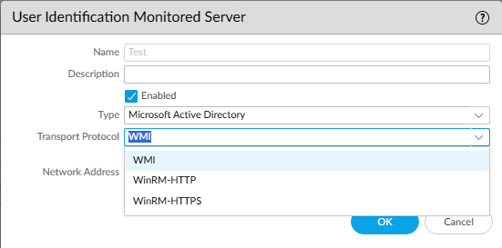 (There is no loss of User-ID functionality when using WinRM instead of WMI, WinRM protocol is more efficient than WMI, and improves the performance and scalability of User-ID monitoring. WinRM protocol is more efficient than WMI, and improves the performance and scalability of User-ID monitoring. WinRM can help to reduce firewall CPU and memory utilization, as well as improve the speed at which IP-user mappings are fetched from monitored servers. Refer to this link for instructions on how to Configure Server Monitoring using WinRM protocol).
