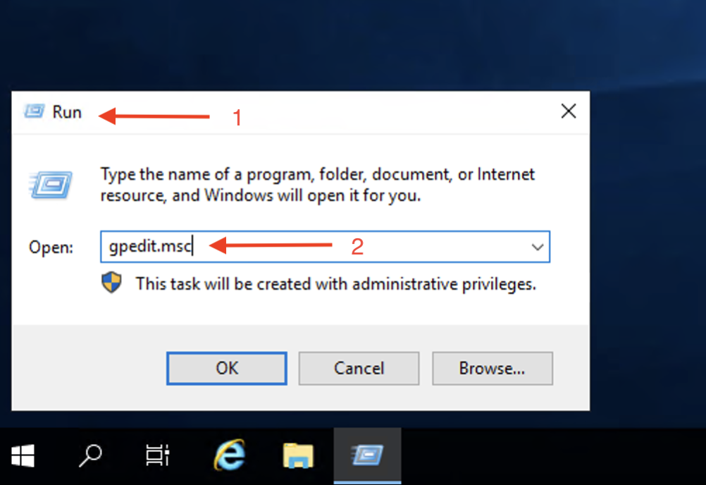 - Öffnen Sie die Eingabeaufforderung ausführen, und führen Sie gpedit.msc aus.
