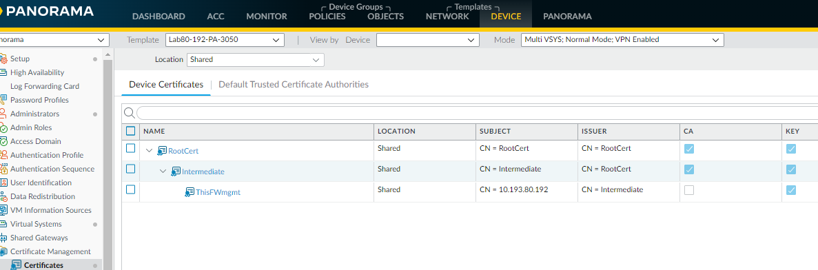 - Once confirmed, correct the configuration by importing a valid certificate on Panorama and pushing the same to Firewall.