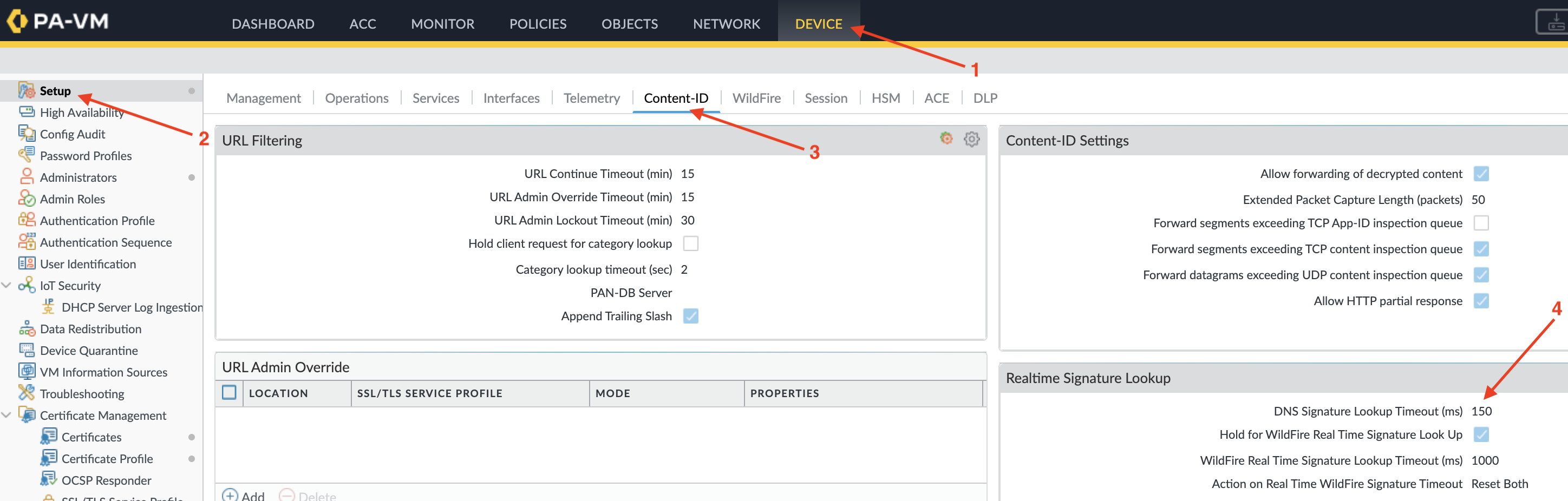 Device --> Setup --> Content-ID --> Realtime Signature Lookup