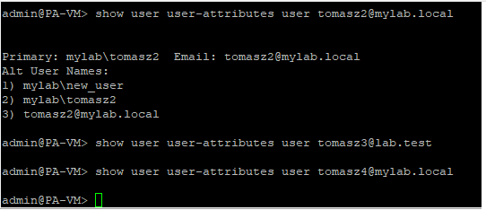 Es wird kein Benutzerattribut aus AD abgerufen, daher ist „mylab\tomasz4“ das einzige Benutzerattribut, nach dem in der Konfiguration gesucht wird.