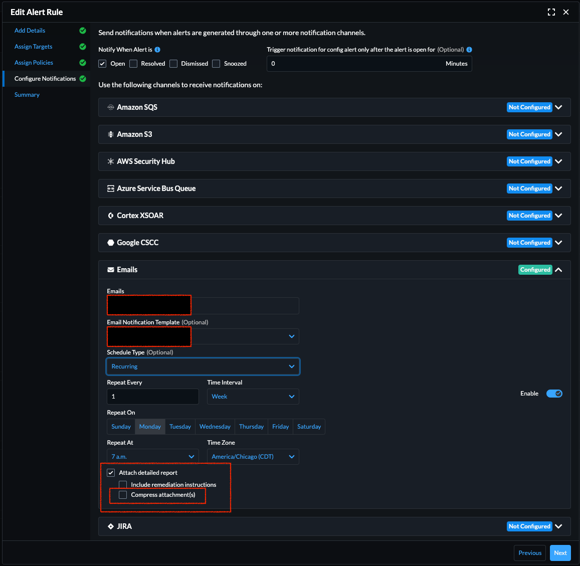 Prisma Cloud E-Mail - Benachrichtigung zum Senden komprimierter Benachrichtigung