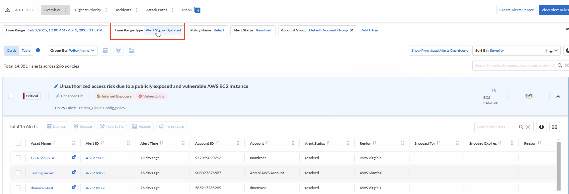 GUI Path: Alerts > Overview > Time Range Type: Alert Status Updated