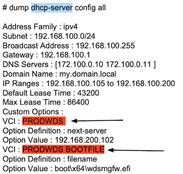 ION configured as DHCP server not sending custom options in DHCP OFFER as required for clients in Windows PXE boot environment