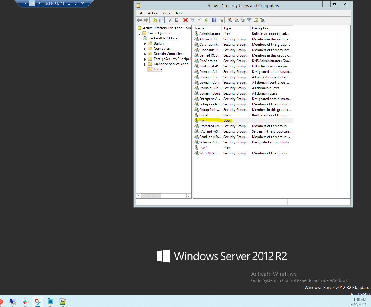 ie, login to the client pc with user m7@pantac-88-151.local