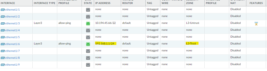 Firewall interface configuration