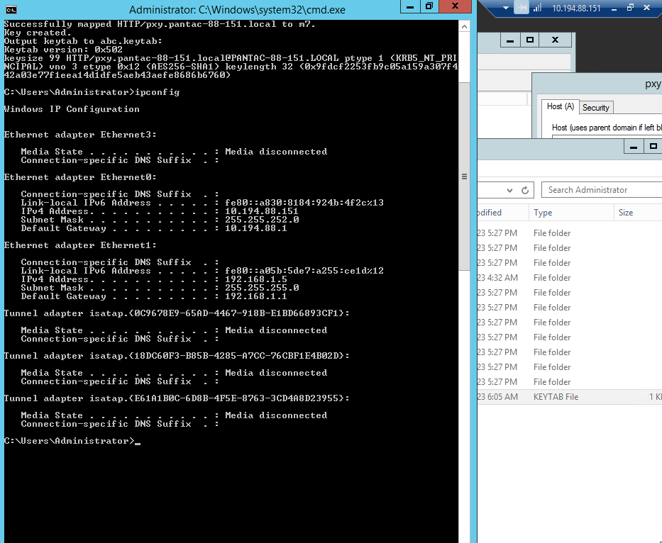 * Adding dns entry for the user account name (pxy.pantac-88-151.local) just configured above.