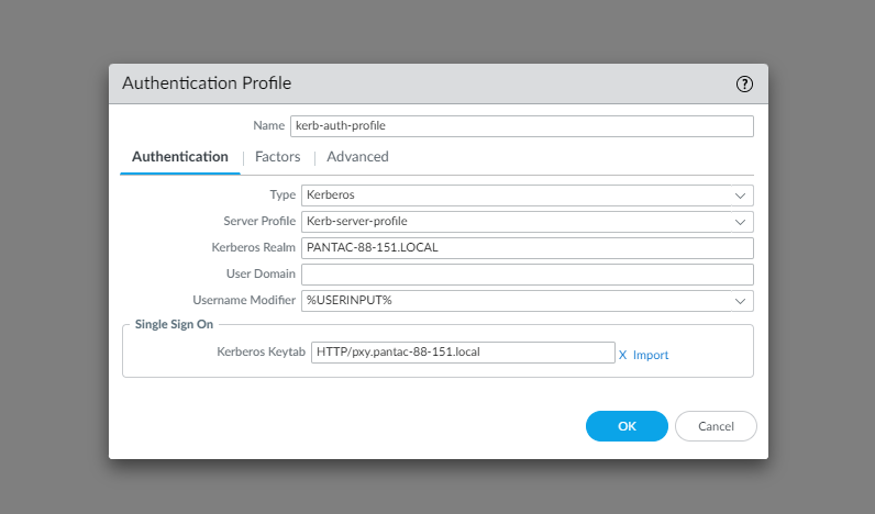 * Need to configure Kerberos profile in the firewall