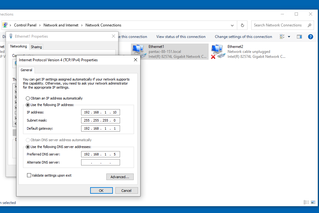 * set the dns server as AD server IP (192.168.1.5) in client PC