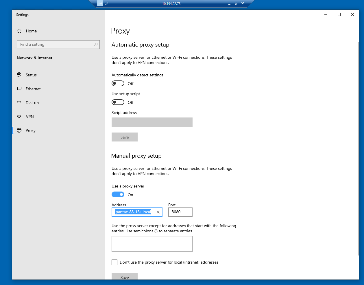 *open proxy in the client PC settings > manual proxy setup > enable “use a proxy server”