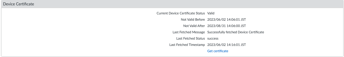 - Go back to Management > Device Certificate and the valid Device certificate is displayed.