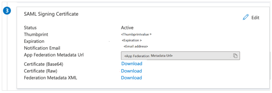 - On the Set up single sign-on with SAML page, in the SAML Signing Certificate section, find Certificate (Base64) and select Download to download the certificate and save it on your computer.