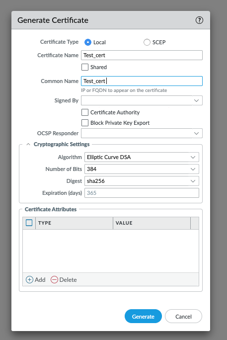 Zum Beispiel: Wenn die Anzahl der Bits auf "384" und der Digest auf "sha256" gesetzt ist, wird das Problem beobachtet