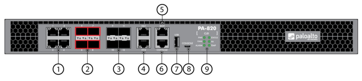 - The SFP ports emphasized by red squares are the affected ports. Both PA-850 and PA-820 are affected by this issue.