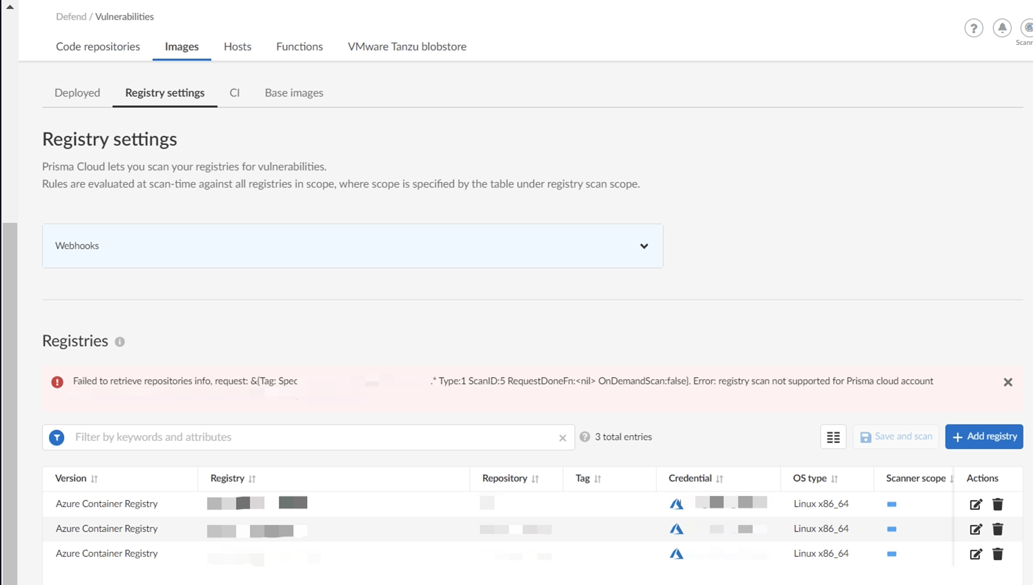 Error "registry scan not supported for Prisma cloud account" Shows Up When Configuring ACR Registry Scan On Prisma Cloud Compute