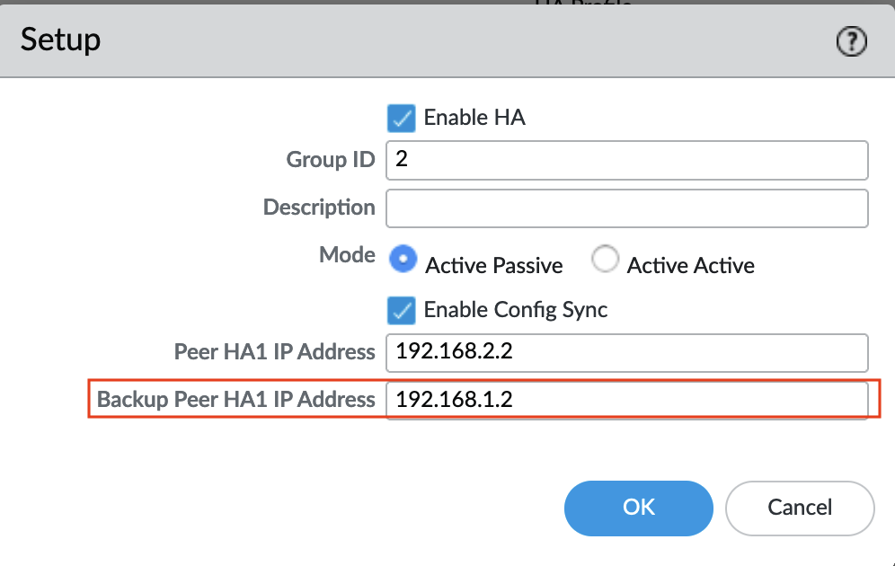 - Configure the correct Backup Peer HA1 IP address in both High Availability devices.