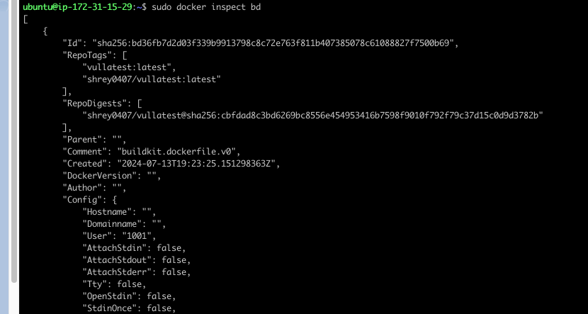 - Using Docker inspect on the relevant image shows the following: