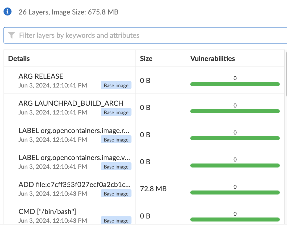 - Assurez-vous d’ajouter les couches supplémentaires après les couches d’image de base pour aider Prisma à identifier correctement les couches d’image de base et à utiliser la fonction « Exclure les vulnérabilités de l’image de base »