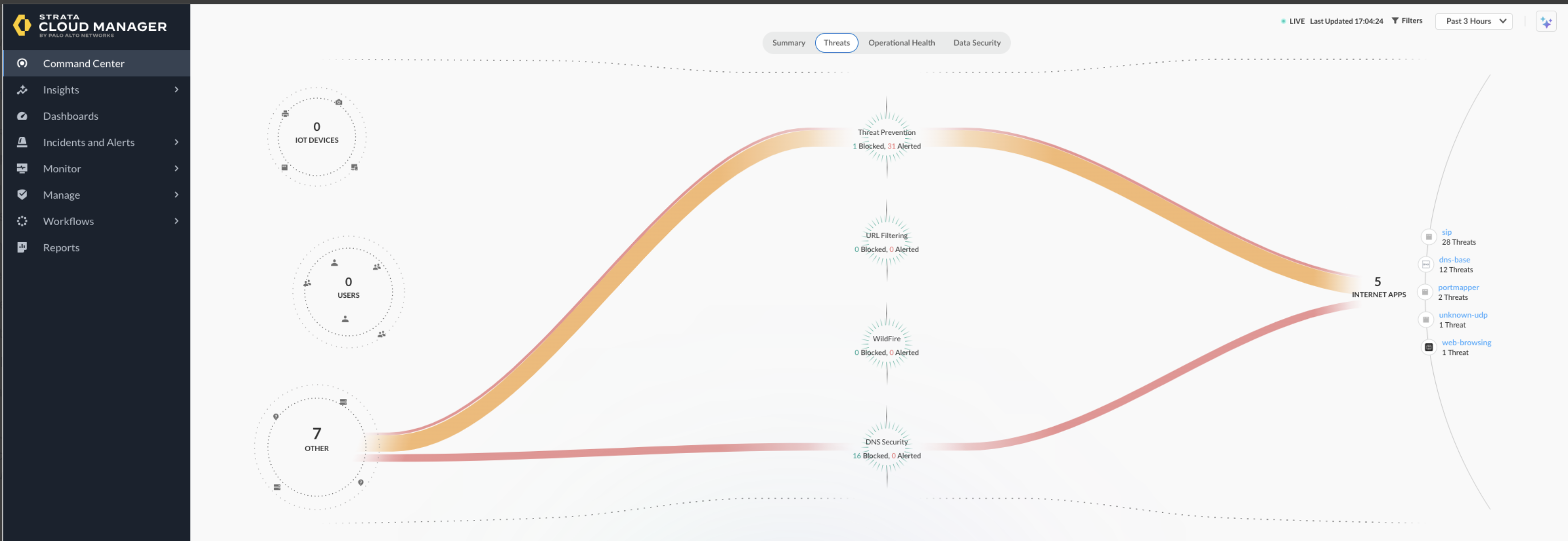 Strata Cloud Manager > Command Center > Threat page reported “0” for Wildfire