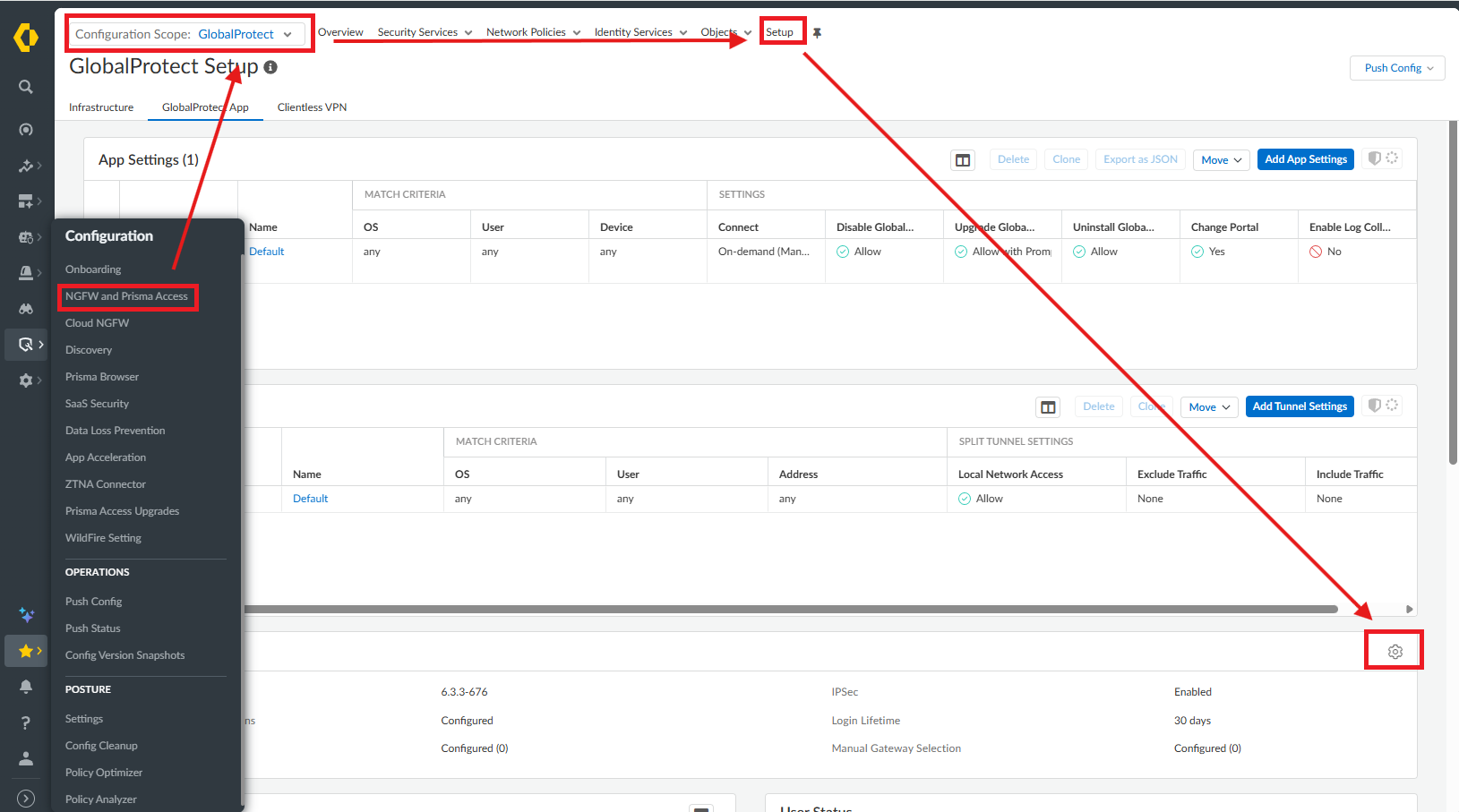 6) Navigate to Configuration > NGFW and Prisma Access > Configuration Scope:GlobalProtect >Setup > App Settings