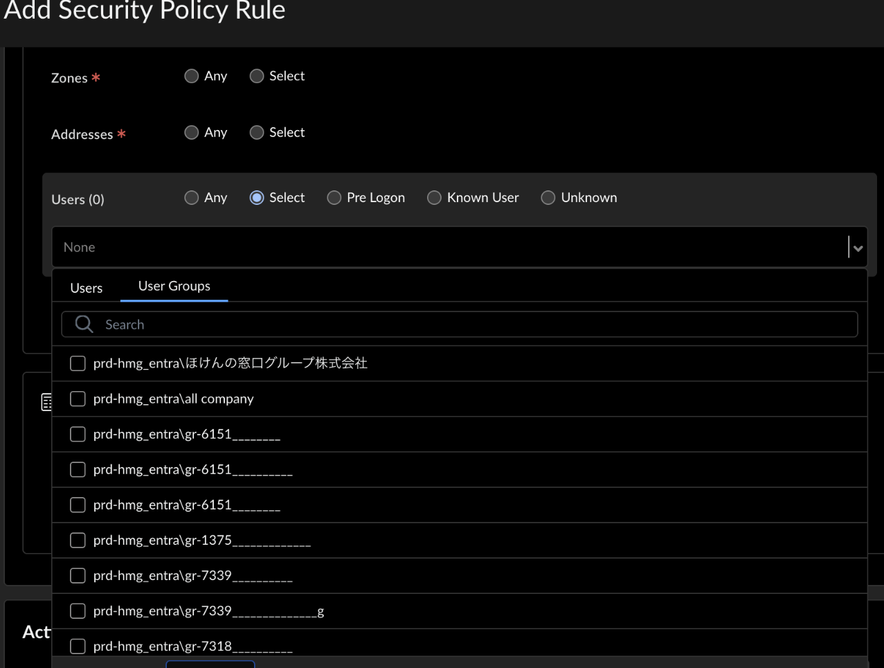 However, in SCM if the group name in the security policy is in Japanese, some group name display will be garbled showing as ‘xxxx_____________’.