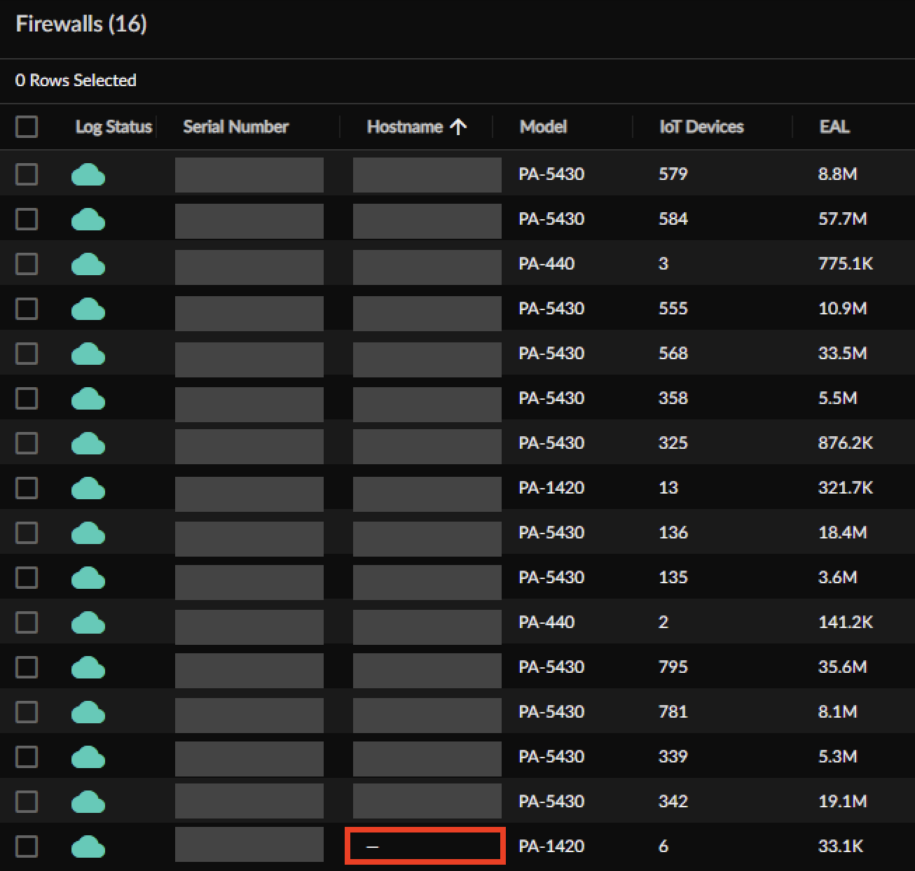 So, the hostname isn't reflected on Device Security Portal if the firewall hasn't forwarded traffic logs to SLS even though the firewall is onboarded to Device Security. It is likely to be observed when the firewall is in HA passive state and the firewall has never moved to HA active.