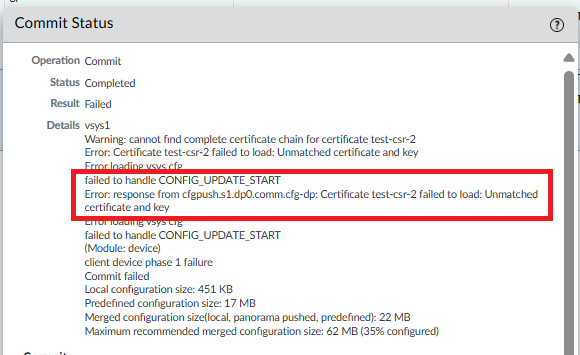 - If commit fails, re-generate new CSR and import that new singed certificate.