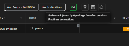 If the NGFW was able to stitch the logs from an asset with an agent installed, it will show "Hostname inferred from Agent log based on previous IP connections"