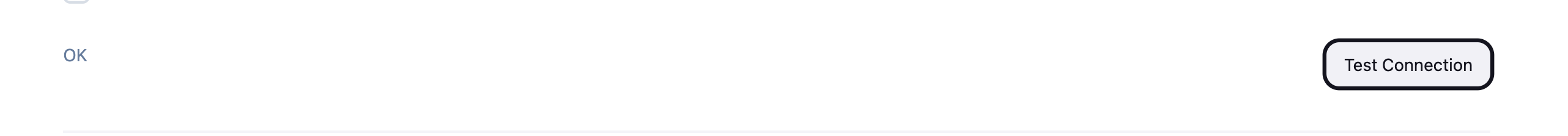 Once valid credentials are used, the error disappears, and on clicking Test Connection, the status shows as OK.
