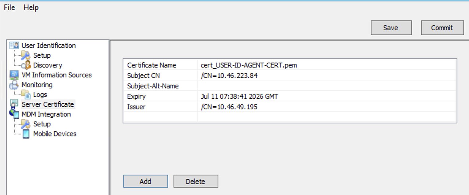 - Common Name: Use either the User-ID agent's IP Address or its FQDN