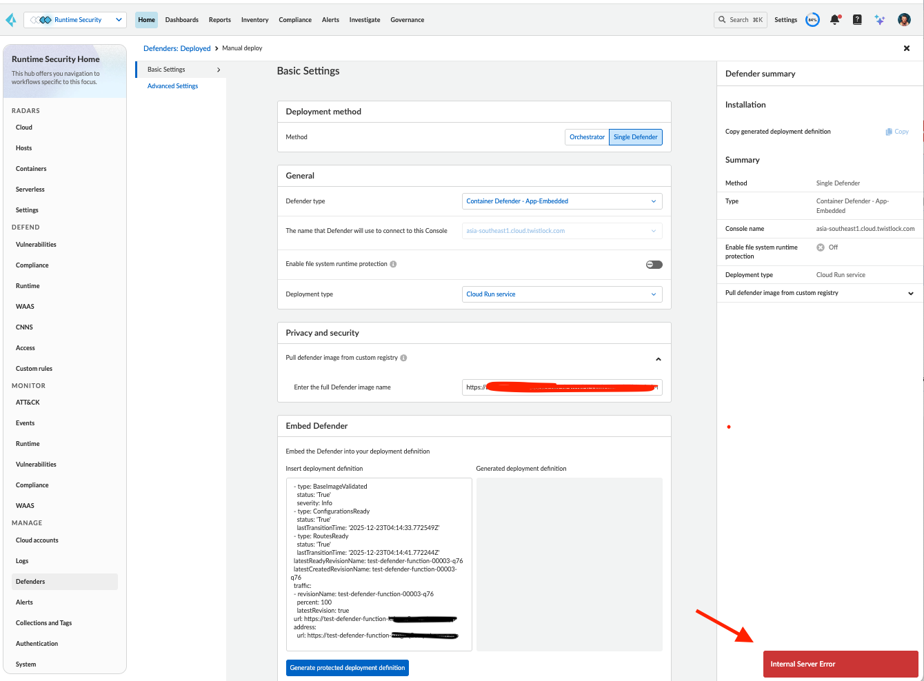route_handler.go:15032 Operation failed: uri=/api/v1/defenders/cloud-run.yaml?project=Central+Console&consoleaddr=asia-southeast1.cloud.twistlock.com&interpreter=&filesystemMonitoring=false&defenderImage=https:%!F(MISSING)%!F