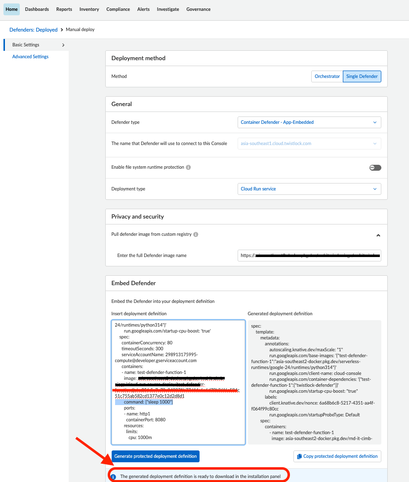- Once this is added, the app-embedded defender yaml is generated without issues.
